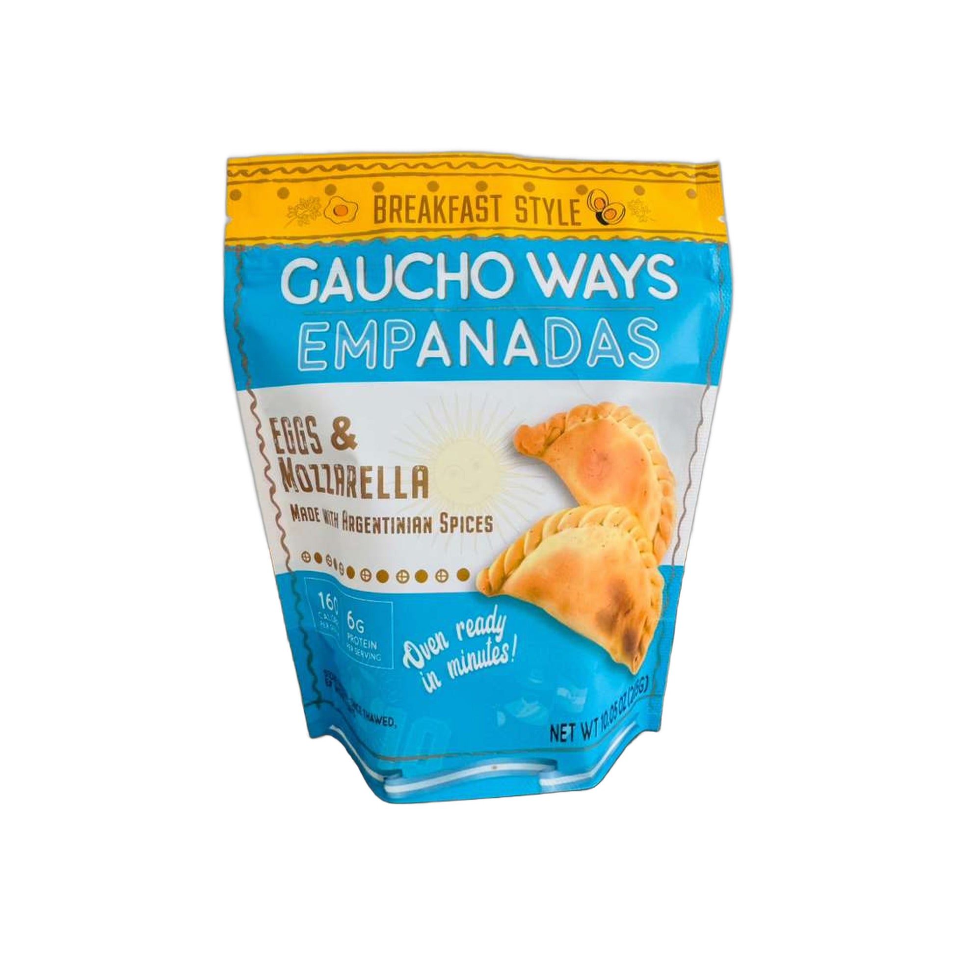 Gaucho Ways Eggs & Mozzarella Empanadas – 12 Pack. A comforting, savory filling of eggs and mozzarella, sold raw and ready for oven or air fryer in minutes.